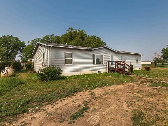 Rare acreage for sale outside Belle Fourche, just off Hwy 212! Flat and grassy 6.78 acre lot that is fenced and has no covenants. Property also contains large trees, 2 wells, city water, Centurylink internet and a new 2500 gallon septic system. Within 1820 square feet, this home has 3 bedrooms, 2 bathrooms and a den. Well proportioned kitchen and cabinetry. Large main bedroom and bathroom suite on opposite side from the other 2 bedrooms and bath. Also recently given new siding, roof shingles, furnace and a/c unit. Just minutes to the Belle Fourche Reservoir/Rocky Point Recreation Area and many outdoor activities or other conveniences. Owner removed all floor coverings so it's ready for you to put your personal touch on it. Property is being sold as is and will not qualify for some types of financing.