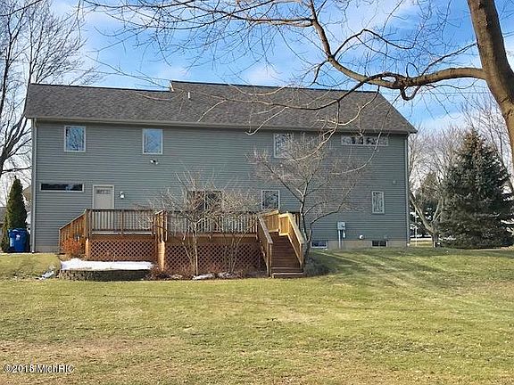 You have hit the jackpot with this 2008 meticulously renovated 5 bedroom,1.43 acre home with a 24 x 32 Pole Barn. Heated outbuilding has 10, 9, and 7 foot doors, cement floors, and electricity. Home is conveniently located in the award-winning Byron Center Public Schools. The main floor has a kitchen with custom cabinets , in ceiling speakers, center island, large pantry, solid surface countertops, built in desk, and a nice size eating area. The living room is spacious and pre wired for in wallsurround sound including Klipsch rear channel speakers, den (that could be converted into a 6th bedroom), main floor laundry with bins, half bath, office with built in desk, and tons of storage space in the mudroom area with 6 lockers, and numerous built-ins for shoes. The upper level has 5 bedrooms and two oversized custom tile walk in showers. The master bedroom and bath also feature in ceiling speakers, there is a huge walk-in closet and oversized tiled master shower.