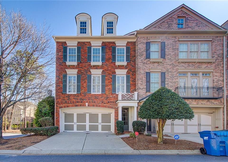 Meticulously maintained end-unit townhome in Alpharetta's Westwood Park, built by John Wieland Homes. This impressive 3-level home boasts 4 bedrooms and 3.5 baths of incredible space. Upon entering you are greeted by a wooden staircase leading to a landing in which you can either go up to the main level or follow a separate staircase down to the terrace level. The terrace level, also located off the 2-car garage (with included electric car charger), can be utilized as a bedroom or a large entertaining space, and features a full ensuite bathroom along with built-in a morning bar, and a rear private entrance leading out to the patio and backyard. The open-concept main level flows effortlessly from the large dining room with coffered ceilings that can seat up to 12 people, directly into the oversized living room (with built-in bookcases). The living room continues into the sunroom where you can access the back deck. The main level is the light-filled chef's kitchen with large windows encased with plantation shutters for privacy. You can enjoy cooking your meals on the gas range located on the enormous 6ft x 8ft center island that seats 6 comfortably. Other kitchen features include S/S appliances, travertine tile floors, gorgeous mahogany cabinets, granite countertops, and a built-in wine fridge. There is a powder room conveniently tucked away in the corner of the kitchen near the stairs leading up to the 3 remaining bedrooms. Once upstairs you'll find the large primary suite with vaulted ceilings, a cozy light-filled sitting room, and an ensuite bathroom featuring double vanities, a jetted whirlpool tub, a separate glass-enclosed shower, and a spacious walk-in closet. The full-size laundry room is located right outside the primary suite in the hallway for ease of use, as you head towards a full bathroom and two more bedrooms, one of which is perfect for an office or nursery. Convenient to so much, including Big Creek Greenway, walking distance to highly rated Fulton Science Academy Private School and the Gathering, Ameris Bank Amphitheatre and Encore Park; Top Golf, endless shopping with over 250 shops and 250 restaurants, close to 400, Avalon and so much more!