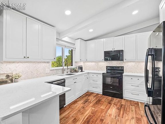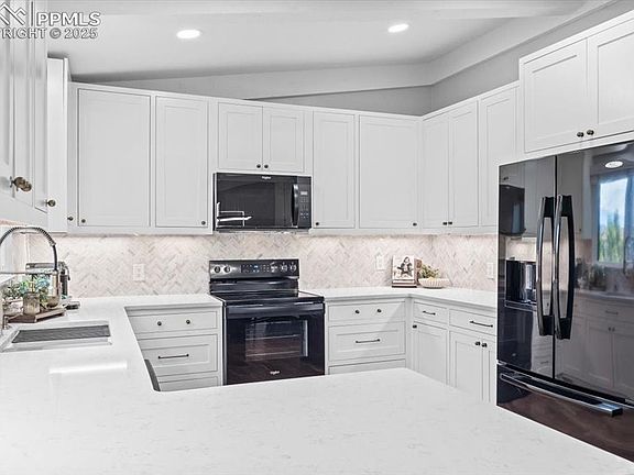 Show-Stopping Kitchen Remodel! Welcome to your forever home—thoughtfully updated and tucked into one of Colorado Springs’ most peaceful pockets. This 4-bedroom, 3-bath Brookwood beauty is back on the market and better than ever, with a stunning 2025 kitchen renovation that blends elegance with everyday functionality. Step inside to a kitchen featuring extended-height custom maple cabinetry, cashmere quartz countertops, bronze hardware, a marble backsplash. It’s the kind of space that makes you fall in love with cooking again. The expansive primary suite offers heated tile floors, quartz counters, a spa-inspired shower, and peaceful views of Pikes Peak—your private sanctuary. Hardwood floors, two wood burning fireplaces, and fresh interior/exterior paint add to the home’s timeless comfort. Notable Upgrades Include: • Brand new A/C and water heater (2024) • Whole-home humidifier + radon mitigation (2023) • Energy Star dual-pane windows (2018) • New impact-resistant roof + thick steel gutters (2025) • Engineered Acacia hardwood floors • Two large utility sheds, extended garage, RV gate, and drip irrigation • Low-maintenance perennial landscaping + new fencing The backyard is built for true Colorado living—with a brand new patio, oversized rooftop deck, and private Creekside setting. This is more than a move-in ready home—it’s a lifestyle upgrade.