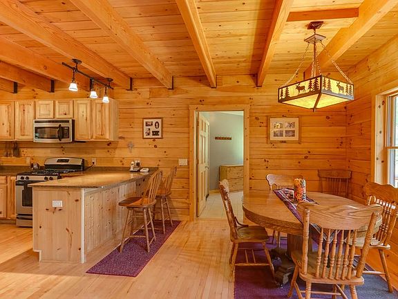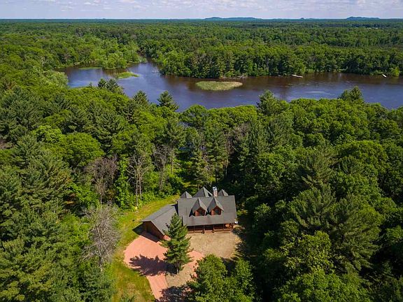 Through the tree lined driveway lies a clearing amongst the surrounding 1.01 acres of forested lot. A stunning modern log home, timeless in style with its full 16" log walls, stands tall against the backdrop of the towering trees. This lakefront property boasts 115' of water frontage on Castle Rock Lake/Little Roche A Cri Creek and transports you to a place where you can relax and enjoy the convenience of waterfront access with your own boat slip. Warm summer days can be spent on the sandy beach of the privately accessible treated pond. Peaceful surroundings and peace of mind come with the territory here. This 3 bedroom, 2.5 bathroom "Smart Home", built in 2007, can be monitored with a smartphone; you can control the temperature of the home, lighting settings and security system with the touch of a button. Technology in the expansive custom cabin doesn't end here. Wired speakers in the great room deliver high quality audio experiences and the heated tile floors in the master bathroom provide a cozy atmosphere on even the coldest days of the year. The great room, with its soaring ceilings, wall of windows and massive stone wood burning fireplace open up to the expansive kitchen and dining area. A sizeable main floor laundry room provides ample space for all things laundry related. The heated, insulated attached garage is a host to parties, projects and parking. Options are endless with the unfinished basement, already plumbed for a third full bathroom. The calm, the quiet and the modern day comforts combine to make this a perfect place to call home.