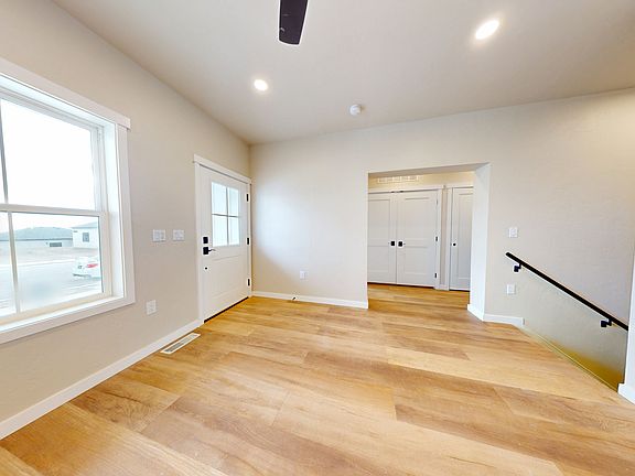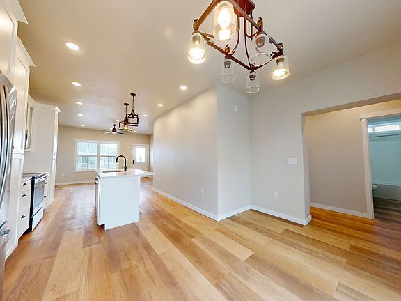 Introducing a stunning new construction farmhouse-style home, complete with a basement and designed with modern elegance. This charming home with striking black fixtures offers three spacious bedrooms and two luxurious bathrooms, each featuring double bathroom sinks for added convenience. The home includes a two-car garage and boasts top-of-the-line G.E. stainless steel appliances in the kitchen, complemented by Corian countertops and farm-style sinks. The kitchen is thoughtfully designed with a pantry, closet organizers, and a special cabinet for the wastebasket, ensuring a clutter-free environment. Enjoy the seamless flow from the dining room and master bedroom to the back patio, perfect for outdoor relaxation. Additionally, the home is prepped for a water softener and equipped with garage electric outlets for electric vehicles, making it both practical and future-ready. This exquisite farmhouse offers the perfect blend of style, comfort, and functionality.
