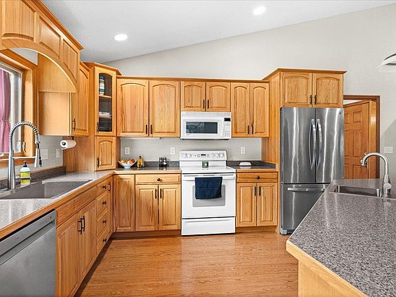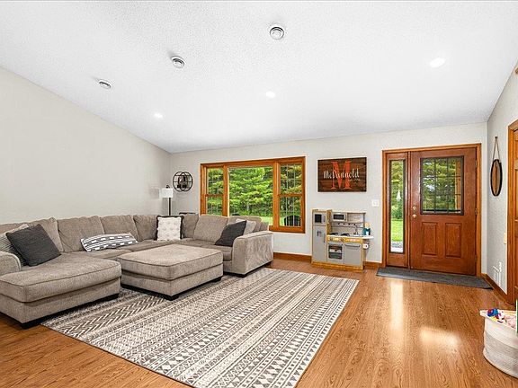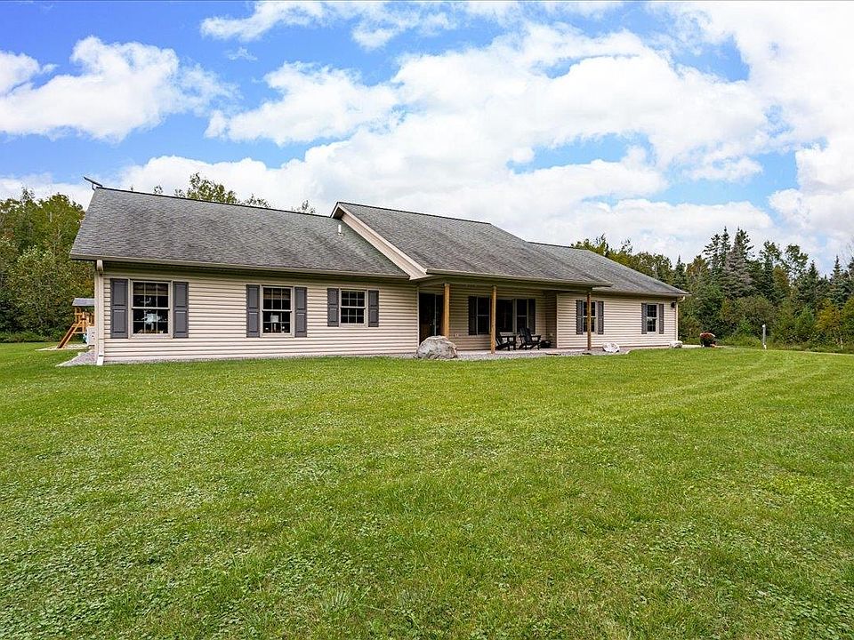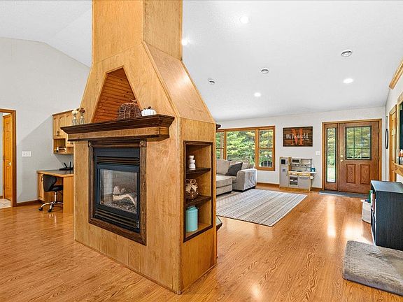Welcome to this beautifully maintained 3-bedroom, 3-bath home sitting on just over 15 acres. There is room to hunt or just roam on your own manicured trails. Inside you will find one level living at its finest with central air and fresh paint through out and new mechanicals. The open-concept design is ideal for both everyday living and entertaining with a custom 2 sided gas fireplace, kitchen has center island and vaulted ceilings. Large primary suite with soaking tub and extra closet space. The 3-car garage provides walk up attic storage and plenty of room for vehicles & toys. Enjoy the patio, covered porch and expansive yard. And there is also a sauna. Whether you're hosting family gatherings, starting a garden, or just enjoying the peace and quiet, this property offers privacy only minutes from town.
