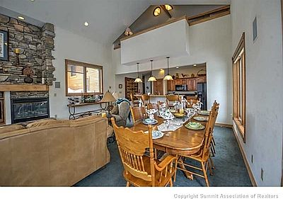THE MAIN FLOOR OF THIS spacious paired home opens up to voluminous vaulted ceilings in the great room w/handsome rock hearth that anchors this captivating space w/huge picture windows & wonderful mtn views. New range and kitchen flooring, new exterior paint. Full bath for every bedrm and 2 car garage for toys & cars. Sleeps 12. At the Raven Golf Course. Hiking trails in area. See virtual tour