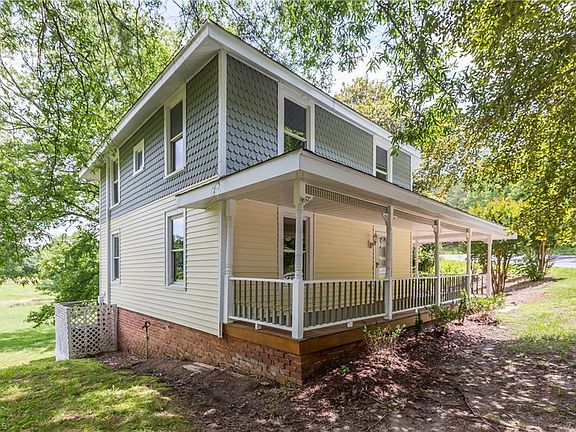 Gorgeous unique 2 story home built in 1890 sitting atop 2 acres. Original character in home with all hardwood flooring throughout. Beadboard pine walls and ceilings. New vinyl decorative windows, 5 year old heat pump, decorative roof and scalloped vinyl shakes reflecting a time from long ago. 2 bedroom with a bonus room, walk-in whirlpool tub, three gas fireplaces to add atmosphere and enjoy during the winter. Beautiful wrap-around sitting porch. MUST SEE! Minutes from Belews lake/Carolina Marina.