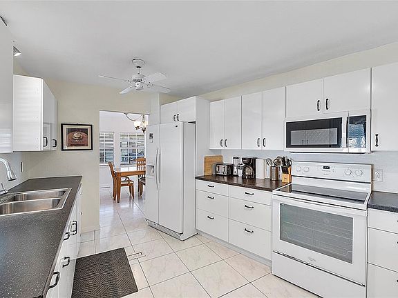 Spacious and fully furnished double-wide 2/2 mobile home with a canal view in the back. The home features tile flooring throughout, a bright and inviting interior, and generously sized living areas and bedrooms. Sliding doors open to a charming front patio area. Additional conveniences include a carport and a storage shed. Located in a well-maintained community offering amenities such as 3 pools, a clubhouse, mini golf, shuffleboard, and more. Conveniently close to shopping, dining, and transportation, with a quick drive to the beach and the airport.