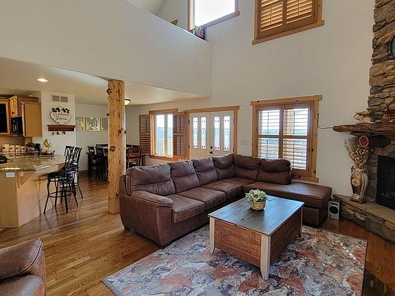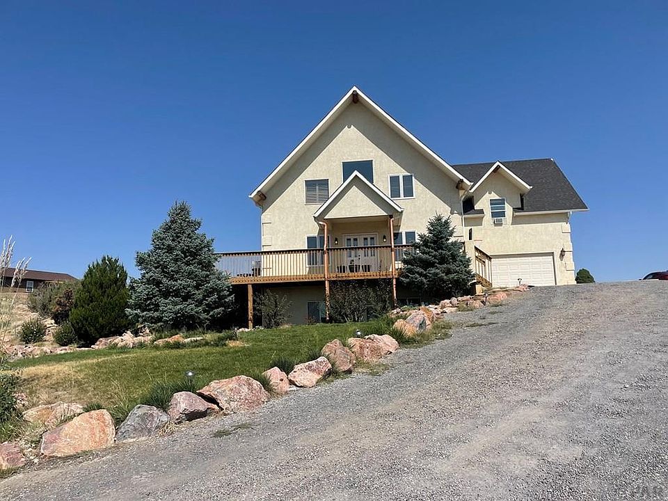 If you are looking for that one of a kind unique property in Pueblo West look no further because this is the one! This exquisitely designed 4 bed, 4 bath, stucco home with finished walkout basement is ready for you to move in! The entry is spectacular with vaulted ceilings. Enjoy your master suite with a balcony on the main level which includes a master bathroom, granite counters, walk-in closet, and large walk-in tiled shower. There are wood doors throughout that add to the luxury you instantly feel when you enter this home. The two large bedrooms located upstairs share a loft that overlooks the living room. Beautiful beamed ceilings and a floor to ceiling fireplace add to the Beauty of this home. Basement is a walkout and features a finished family room, bedroom, bathroom and a gun room with metal locking door. You will enjoy spectacular Sunrise and Sunsets from your wrap-around deck. Don't miss out on this one!