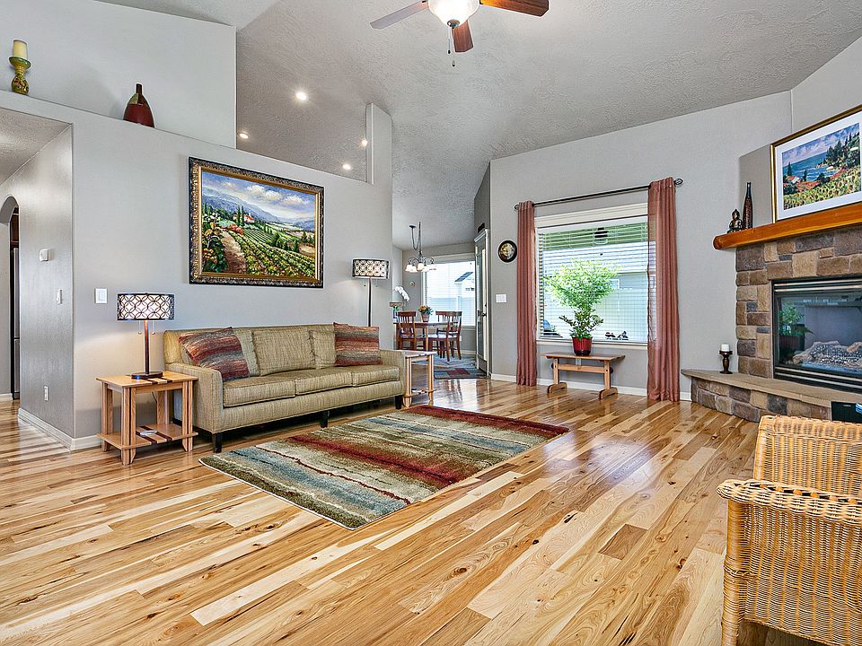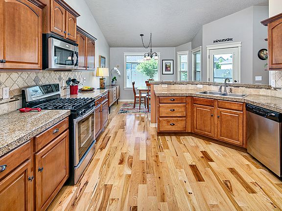 In beautiful Creekside, with a 2 acre park and community pool for residents only. You will love this gorgeous, immaculate home with spacious, open vaulted ceilings throughout. The floors in living, dining and kitchen are solid hickory. Cook’s Kitchen has travertine tiled backsplash, granite counters, walk-in pantry wired for electric w/granite. Relax in your custom master suite with vaults, jacuzzi and walk-in, tiled shower and a roomy walk-in closet. Picture yourself having your morning coffee on the lovely patio with secluded, beautifully landscaped back yard. Huge, open multipurpose room upstairs. Roosevelt Elementary School is within walking distance. Middle and High Schools are nearby, as is Nampa Recreation Center. The serene Wilson Creek walking/biking trails are within a mile. Shown by appointment. Accepting offers from cash or lender prequalified buyers only. CALL DIANA, OWNER, AT (541)517-6628 for your appointment to view this lovely home.