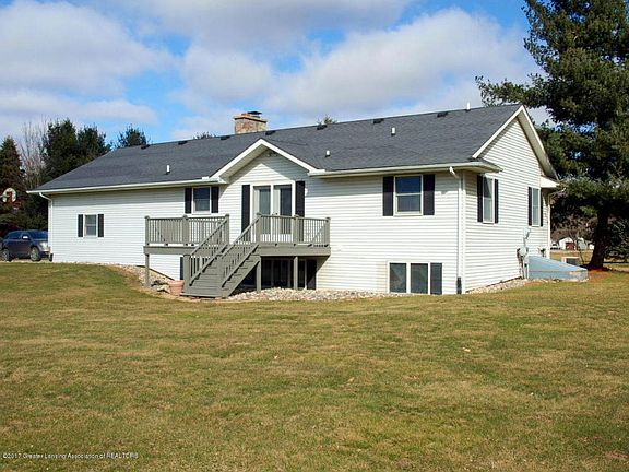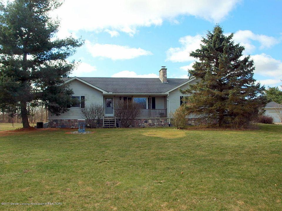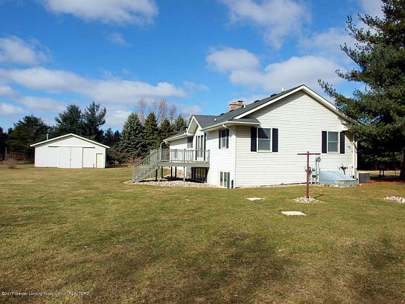 Nice and clean happy country ranch sits way back off the road - approximately 1/2 way on the total 10 acres. Kitchen features eat in bar and good size pantry with newer appliances. Large living room has a bay window joins a dining area with patio slider out to a newer trex deck. On the first floor there are 2 bedrooms and a bathroom and lower level features 2 bedrooms with large egress windows and another full bath, family room and laundry with utility room and storage room. The furnace room are a has a walkup door to the outside. Nice if anything has to be brought in or out. And upstairs near the garage side door to the house is a hook up for first floor laundry. There is a detached 2 1/2 car garage workshop and a wonderful 5 acre or so backyard. Lots of wildlife and running room. Don't miss this one!