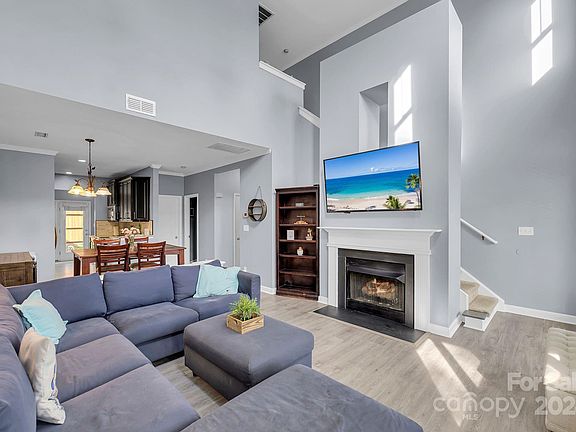 Step into luxury and comfort in this stunning townhome nestled in the prestigious Harborside community that offers great amenities and lake access A rare gem, this home boasts a main level primary bedroom, offering unparalleled convenience and is super hard to find. As you enter, you are greeted by a grandeur that is both inviting and impressive. The open floor plan flows from the living room with its soaring ceilings and abundant natural light to the remodeled kitchen, with stainless steel appliances & sleek finishes.Upstairs, you will find two additional bedrooms, each offering a retreat-like ambiance. All bathrooms have been renovated and have a spa like feel.Outside, a private fenced small patio is perfect for relaxing and enjoying a morning coffee or evening cocktail in the fresh Carolina air. Immerse yourself in the community's resort-style amenities, including a sparkling pool, tennis courts, day dock, and boardwalk around the lake. Restaurant & Greenway in walking distance