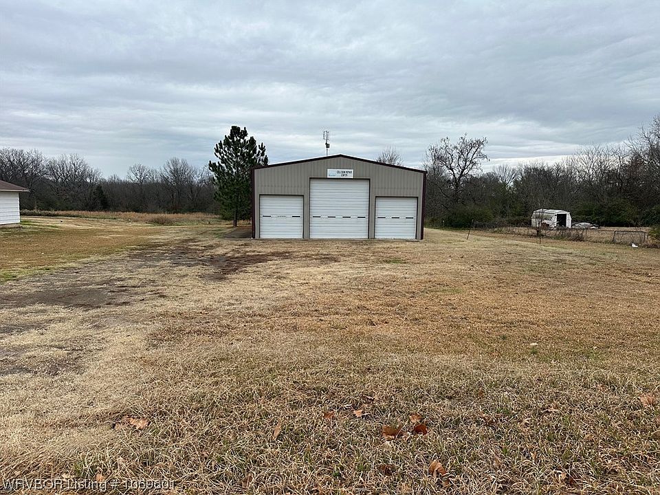 This shop/home is a total of approximately 2,400 square feet. the back in of the shop has been framed into what appears to be a one bedroom, 1 bath. The electric and the plumbing has been installed however it has not been connected. The shop has natural gas available and a septic tank, rain gutters on two sides of the shop. This property has endless possibilities. Located on approximately 2.72 acres, located on the West end of Spiro just minutes from Fort Smith Arkansas.