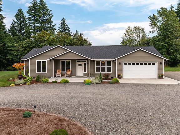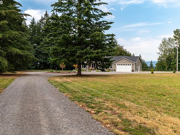 Stunning view as soon as you walk in the door! Kitchen opens to Great Room w/Wood stove. Lots of windows to enjoy that Mt.Hood View. Bamboo Engineered Hardwoods, Formal Dining, Master w/soaking tub and walk in closet. Laundry room and 1/2 bath when you enter from the garage. 40 x 60 Shop fully insulated with RV Hookups, plumbed for dry-air system, LED Lighting, 200 amp separate panel . OC School District. Timber value unknown but definitely has value! There's also a pond on the lower half