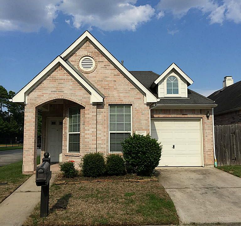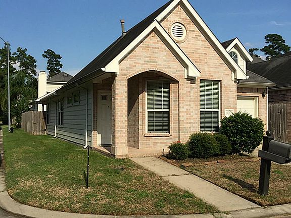 Avoid that crammed feeling on this corner lot. This beautiful gated community home has quick & easy access to I-45, dining and shopping. 2 BR 2 Full bathrooms. Master has double sinks, separate oval tub and shower and sitting area. Both bedrooms have walk in closets. 2 inch faux Wood blinds throughout with gas log Fireplace in LR. Covered front and back porch, ceramic tiles in foyer, entry hallway, dining room and kitchen. All appliances come with the home (Washer, Dryer, Fridge). No MUD taxes