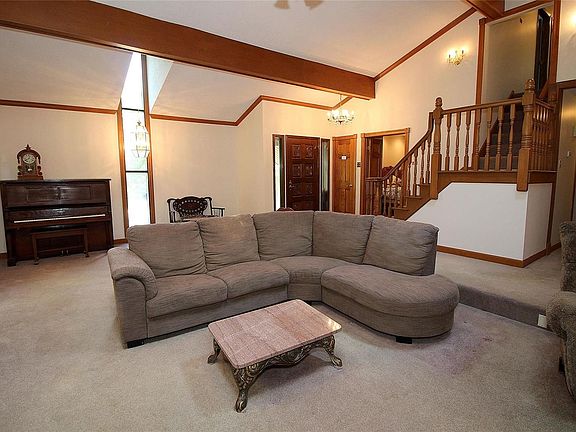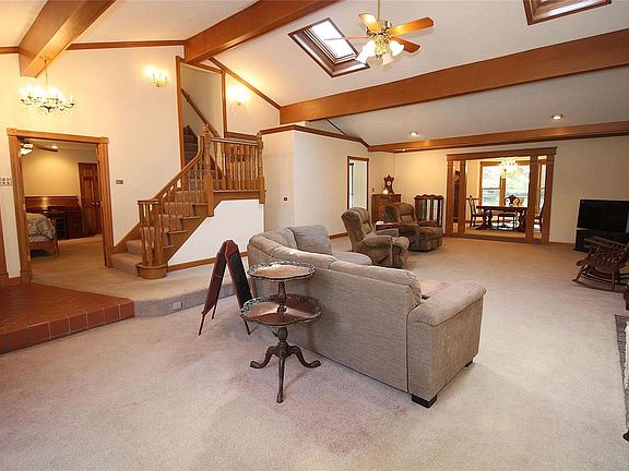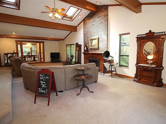 As you approach this spacious 1.5 story home you will be impressed by the large level front yard encompassed by an expansive circle driveway. The home sits on a 3+ acre lot that backs to woods & offers privacy. Inside you will be greeted by a huge great room with a wood burning fireplace that soars to the top of the vaulted ceiling. The adjacent dining room has a large bay window & elegant custom woodwork. There is also an area in the kitchen for casual dining that looks out to the private patio. The main floor master bedroom suite features a walk-in closet plus a luxury master bathroom including a whirlpool garden tub & separate shower. There are 3 more bedrooms on the 2nd floor and another full bathroom updated with a modern flair. Other features: main floor laundry next to a half bath, skylights that add an abundance of natural light, zoned HVAC system for year-round comfort, a cozy 16x14 screened porch, a 3 car garage plus a 14x12 storage shed. Home Warranty & Recent Improvements