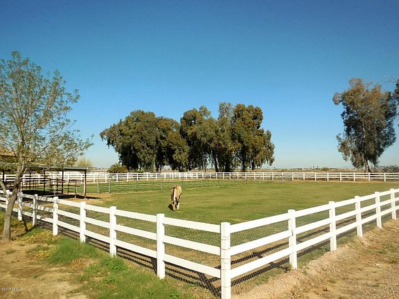 Awesome Horse property in an equally awesome neighborhood of Camelback Garden Farms! Near 1&1/4 acre irrigated horse property with great horse set-up*Gorgeous/Like New home with high flat ceilings*upgraded kitchen with 42'''',solid Oak cabinets and carefree,corian counters/nice walk in pantry/kitchen open to dining/breakfast area and open to the greatroom*Tile thru out house with wood in the bdrms*Two-tone paint*Great room and master with french doors that open to the full patio acros back of home-overlooking the large yard and horse facilities*Baths are upgraded with ''''leather look'''',travertine marble and brushed nickel spout faucets*Separate jet tub and shower in the luxurious master bath*RV gates with lots of trailer parking*Extended 3 car garage can accommodate almost any long truck!