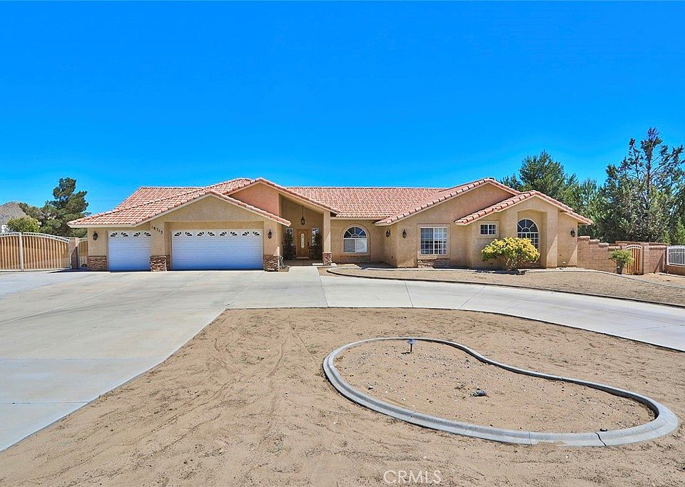 GORGEOUS APPLE VALLEY HOME IN HIGHLY SOUGHT AFTER NEIGHBORHOOD ON LARGE POOL SIZED LOT! BONUS ROOM COULD POSSIBLY BE A 5TH BEDROOM IF NEEDED! OVER AN ACRE OF LAND WITH PLENTY OF ROOM FOR ALL YOUR TOYS, RV AND MORE! IN A PRESTIGIOUS AREA CLOSE TO HOSPITAL, DR'S OFFICES AND FREEWAY! SOLAR TO BE PAID OFF BY SELLER IN ESCROW! This wonderfully large home with over 3200 square feet has so many features! Features include but are not limited to extra wide hallways, tall doors, circular drive, large 3 car garage, RV access on side with lots of concrete, pool size lot, covered patio, gourmet kitchen, open concept from kitchen into family room, living room, indoor laundry, pantry, granite countertops, walk in closets with custom made inserts, 2 fireplaces (one in master bedroom and one in family room), solar panels, tile floors, large bedrooms, French doors, ceiling fans, bonus room, cathedral ceilings, lots of cabinets, stainless steel appliances, slider in primary room, HUGE soaking tub in master bath, dual sinks and so much more! **Red border around drone pics is for illustrative purposes only and does not necessarily correctly identify boundaries. Buyer to do their own due diligence. Pictures were taken before sellers relocated. Home is now empty and kids' playset in backyard is not included in sale. Schedule your showing appointment today!