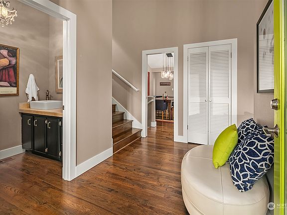 Beautifully updated west facing 3 bdrm/2.5 bath home w/ views of Puget Sound, Islands, & Olympic Peninsula. Enchanting gardens featuring unique, rare plantings, amazing colors, & secret retreats will delight the soul. Open kitchen w/ center island breakfast bar, dining area, & access to deck & gardens. Stainless steel appliances set within slab granite counters atop custom cabinetry. Spacious primary suite w/ spa bath & large walk-in closet. 2 additional bdrms & remodeled bath. Quiet office space w/ access to deck & gardens. Large media/library room w/ refinished concrete floors. 2 car garage w/ additional 3+ car off street parking. Incredible indoor/outdoor living minutes from downtown Edmonds. A world away in the middle of it all.