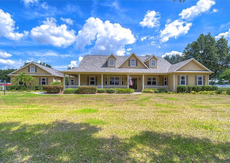 This CUSTOM Southern Traditional estate that was built for the owner is hard to describe in a short amount of words! Let’s start with some of the BIG TICKET items that have been recently replaced; NEW ROOF IN 2022, 27KW SOLAR POWER SYSTEM, WHOLE HOUSE SURGE PROTECTION, NEW WATER SOFTER, CHLORINE INJECTION SYSTEM AND REPLACED DRAIN FIELD… WOW! As if that isn’t enough to peek your interest already, this home is totally GREEN! With 75 solar panels feeding to TECO, there will almost never be an electric bill! Does it get any better than that?! The location is PRIME with 5 acres of pristine, level land, this home is zoned for agricultural! A NEW HORSE FENCE surrounds this amazing estate and is nestled behind a BRAND-NEW electric gate! This is the perfect opportunity to start the homestead you have always dreamed of! Take a tour of this grand design and immediately notice there was NO detail overlooked, this home was built for easy living and boasts the technology and design to make it so! Every corner exudes a mastery of craftsmanship that will steal your heart away! From the moment you set foot on the oak hardwood floors you’ll know you are home! This home features a rare four-way split floor plan featuring 5 bedrooms, 3.5 baths, office, bonus room and OVERSIZED 5 car garage! The kitchen is a true masterpiece! This gourmet kitchen showcases built-in Thermador appliances, two dishwashers with cabinet fronts, and a remolded walk-in pantry! Adjacent to the kitchen is a spacious great room that will capture your heart with its panoramic views of the pool and backyard! 14' vaulted tongue and groove ceiling and wood/gas fireplace becomes the cherished gathering spot for memorable events and cherished family time! The primary suite has been carefully curated to provide an unparalleled living experience! From the richness of the oak hardwood floors and gas fireplace to the thoughtful design of the walk-in closets and the sheer indulgence of the oversized en-suite bath, this is a haven where luxury meets functionality! Four additional spacious bedrooms all feature walk-in closets and en-suite baths! An oversized laundry room embraces practicality with an abundance of cabinetry and counter space, supplemented by a walk-in closet for all your additional storage needs! CUSTOM saltwater pool and spa offer a glimpse of resort-like luxury with pavered stone, two waterfalls, outdoor kitchen plus an outdoor area featuring a NEW pergola and fireplace! Oversized four-car garage, connected to the main residence through a stunning indoor breezeway! Here, custom cabinetry and a slat wall offer sufficient storage! An additional covered area outside provides shelter for your cars, boats, and all your beloved toys! This home is located one hour from beaches and Disney! Zoned for Great Schools! Come see it today, before it’s too late!