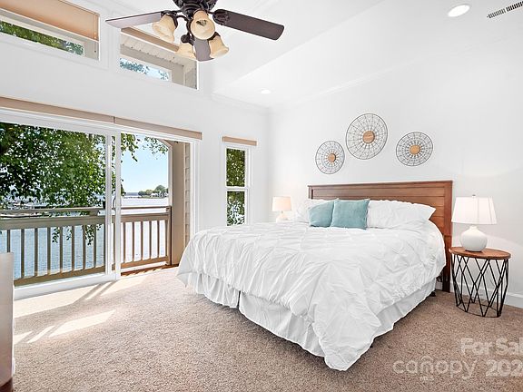 This beautiful waterfront townhome offers unparalleled proximity to Lake Norman's shoreline-quite possibly one of the closest in all of Cornelius. First floor entry welcomes you to an open floorplan & big sliders showing off gorgeous big water & sunsets views. Fresh white paint, it's airy & bright. Main level offers spacious living/dining space & a well appointed kitchen. Upstairs, the primary bedroom has soaring ceilings & sliders leading to a Juliet balcony overlooking LKN. 2 additional beds w/ plantation shutters. The spacious/private deck w/ kayak storage underneath is just a few feet away from dipping in the lake in a large, no wake zone cove. Great as a primary or 2nd home. 1 car Deeded Garage, can be sold w/ or w/out. Amenities: pool, clubhouse, tennis, fitness center, playground, day boat slips. Approx 25 min. N of Uptown Charlotte & minutes from Birkdale Village, Robbins Park, Ramsey Creek Beach, boat rental marina, restaurants, & shopping. Easy entry to Catawba w/ stoplight.