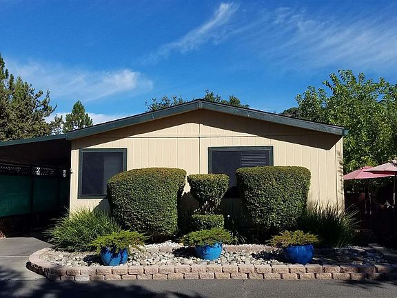 CLASSY HOME WITH IT'S OWN PRIVATE PARK SETTING IN MILL VILLA ESTATES...Desirable Senior Park Under Rent Control. Home has been upgraded with nice attention to detail. It is hard to want to come inside as the lovely covered wrap around deck with lush landscaping keeps you lingering. But the inside is just as inviting. Floors are all gorgeous Hardwood bamboo & Core-Logic thru out, textured walls, wood baseboards, upgraded light fixtures/fans. Kitchen features an L shape dining bar, stainless steel appliances & oodles of cabinets. Large Master Bath has garden tub & shower with upgraded fixtures and lighting as well as guest bath. Whole house was plumbed with new pipes and water heater plus roof in the last few years. This home is move in ready to enjoy for many more years. Location is at the end of a quiet court..no traffic. Back of home has an open space buffer and oversized storage shed. Park rent for this unit is $595 includes garbage and use of clubhouse, pool/spa & billiard room/library. Water $27.40 & Sewer $38.80 monthly. Park activities are bingo, bunco, bridge, pinochle, whist, water aerobics, luncheons & dinners, to name a few. Come join the fun at this active 55+ community.