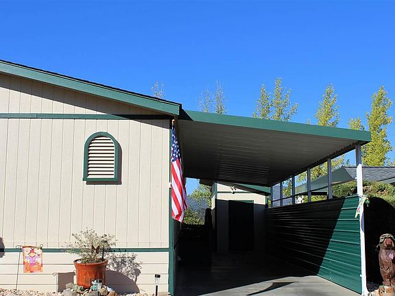 Lots of Upgrades! Roof is 3 years old + Hardwood flooring + newer carpeting + All NEW Windows + Convection Oven + New Dishwasher + Privacy Fence in Carport +New Toilets + New Paint Inside & Out! You will not see Better than this! Pride of Ownership! Clean and Neat home! Priced to Sell with all the New upgrades! Location is great! Top of the Park! Views of the Foothills! Clubhouse + Pool + Small Park across from the home + Park located at entry to park + Located close to town. Senior Park - Thank you