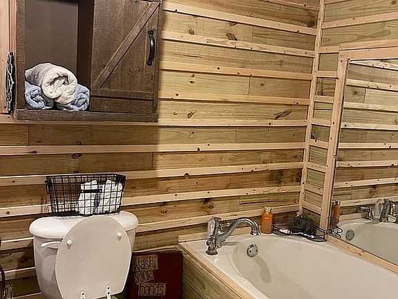 Step onto the 10x50’ back porch each morning and watch the sun rise over your stocked pond. Afternoons invite you to relax on the screened porch with a swinging bed, or soak under the stars in your cowboy hot tub.