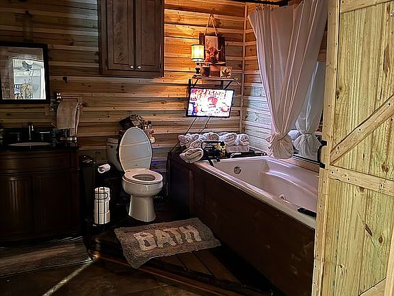 Stocked pondOne-stall barnZip lineSmall chicken coopCowboy hot tubSwinging bedBack porch