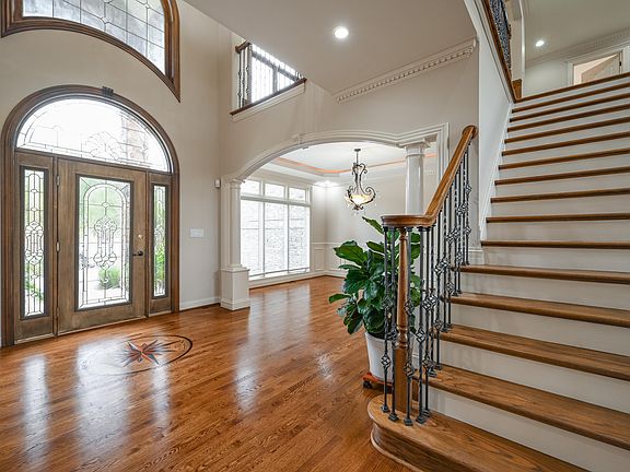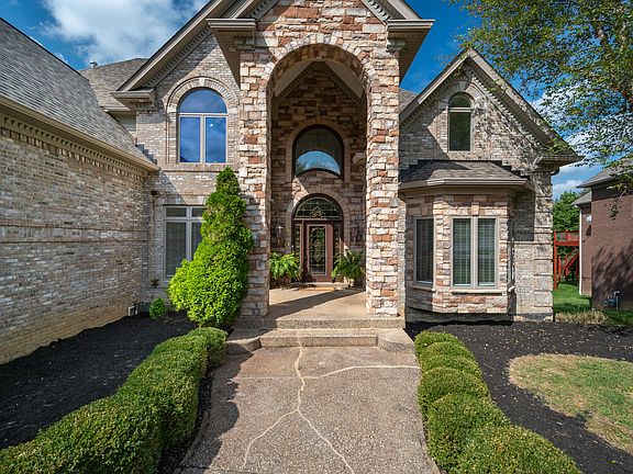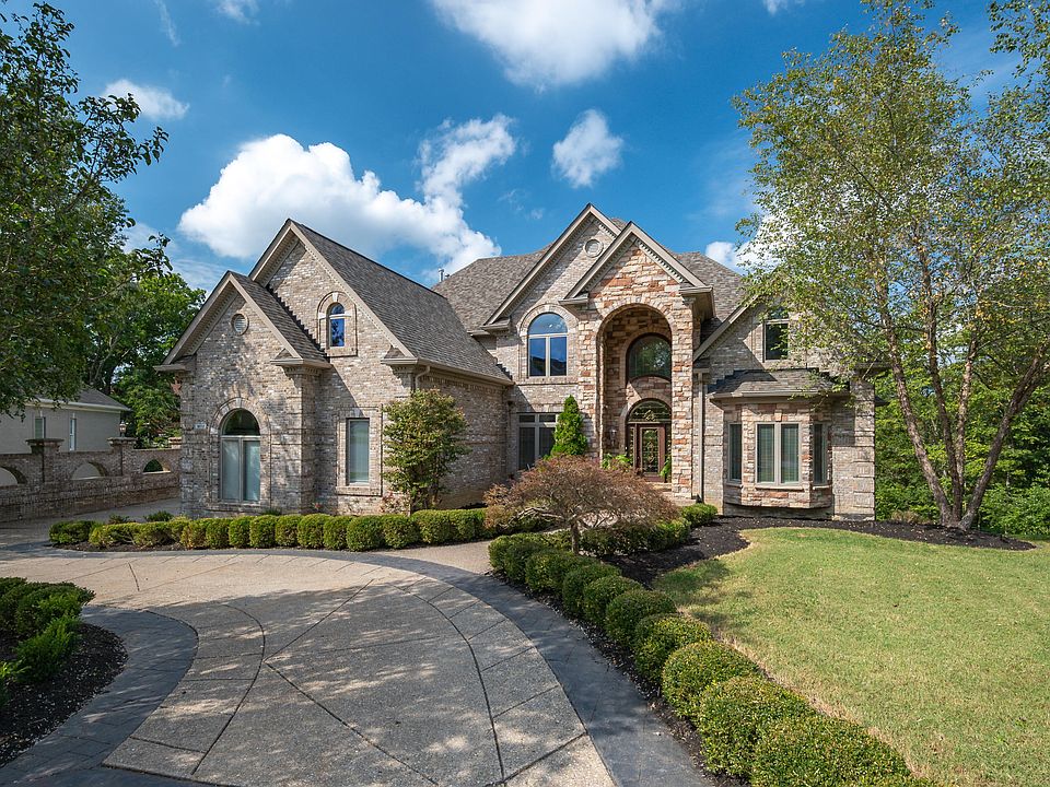 Move-in ready estate priced below appraised value and offering nearly 7,000 square feet of well-appointed living space. Upon pulling onto circular drive, one can appreciate the quality craftsmanship and beautiful architecture this home has to offer. Stately, two-story foyer is sure to impress with coffered ceilings, detailed millwork and grand chandelier. To the left of foyer, spacious formal dining area awaits with beautiful custom wainscoting and ornate chandelier. Two-story great room offers both elegance and comfort. Rear facing wall of windows overlook covered back deck, wooded yard and provides endless sunset views. Grand, two sided gas fireplace flanked by dual arched entranceways flow into kitchen. Warm and inviting, kitchen boasts granite countertops, double oven, an abundance of cabinetry complete with large center island and gorgeous copper farm sink. Convenient mud room resides off kitchen along with entrance into attached three car garage. Adjacent to the great room you will discover the first floor Owner's suite. Vaulted ceiling, cozy gas fire place and private entrance onto covered back deck create the ideal retreat. The spa-like en suite offers jetted bath, glass enclosed walk-in shower with dual shower heads and spacious walk-in closet. Two story back deck overlooks large pond, while tree lined fall-away lot provides ample privacy and tranquility. Make your way onto the second floor to find a Juliet style balcony overlooking the great room. Vaulted ceiling with custom, floor to ceiling book shelves make the perfect library, office or study. Continuing across the catwalk you will discover vaulted, loft style room. Two spacious bedrooms complete with walk-in closets are connected by Jack and Jill bath. Continuing down the hall you will find the third bedroom and additional full bathroom. Children and adults alike will fall in love with the custom playhouse built into this spacious bedroom. Walk-out, lower level provides even more space to entertain and enjoy with nearly 2,200 square feet of additional living space. Lower level great room features tall ceilings, equally impressive millwork and centered by stoned encased, two sided fireplace. Fifth bedroom or option to utilize as home theater connects to full bath and adjoins to bar area opening to great room. Stamped concrete pad just off back deck provides the ideal spot for outdoor hot tub. Estate is truly move-in ready with a complete roof replacement (August 2020), new carpet in Owner's suite and throughout second floor and professionally painted walls, ceilings and trim throughout entire home and garage. Contact listing agent today to arrange a private showing.