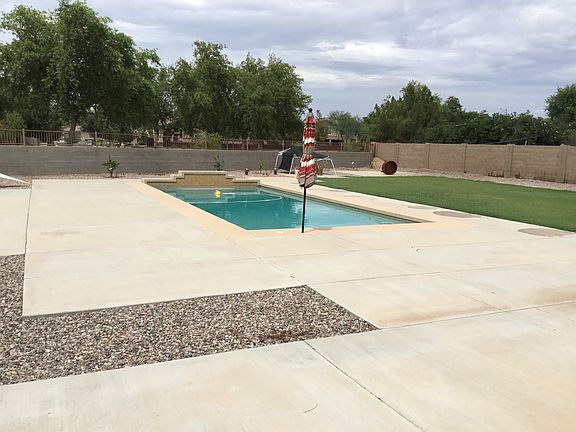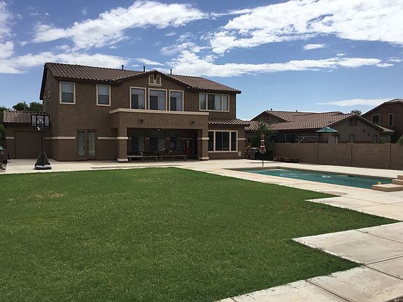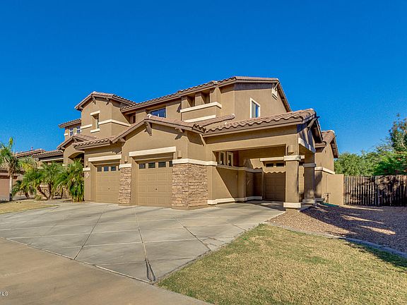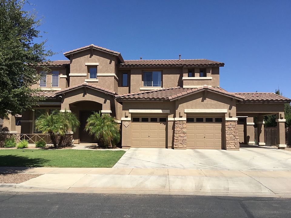 This stunning Sossaman Estates home boasts 5 bedrooms, 3 baths, huge lot with a great pool. Twenty foot ceilings at the entrance with a tile medallion makes this the grandest of entrances. This floor plan is wide open with ten foot ceilings on the main floor. The home has a large kitchen with a great island, plenty of room/storage for all your cooking needs. A huge loft/bonus room on the second floor that splits the sleeping quarters. Master Suite on one side all the others rooms located opposite. The backyard is over 1/3 of an acre with a large rectangular pool.