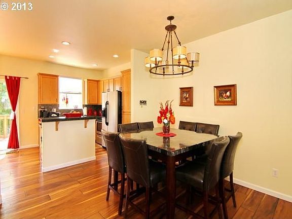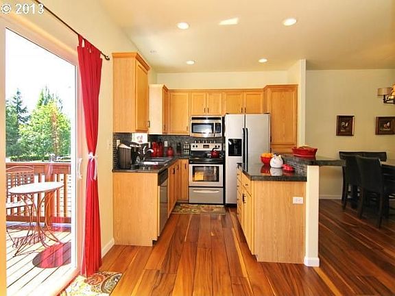 This beautiful home has been updated with finishes you don't often see in this price range. Kitchen has granite counters, SS appliances, island and breakfast nook w/deck access. Designer paint, high ceilings and upgraded fixtures. Gorgeous teak hardwood floors run throughout the home/stairs. 3 large bedrooms upstairs and a fabulous bonus room on the lower level w/wet bar and patio access. In the heart of Tualatin..Close to everything!