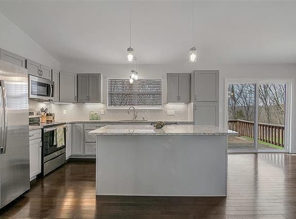 BEAUTIFUL LIKE-NEW RANCH on 2+ acres backing to woods in AAA Rockwood Schools! Features a bright & open floor plan, w/hardwood floors, vaulted ceiling, 2 white blinds, 6-panel doors. Entire home was rebuilt in 2019 except for basement walls w/very nice upgrades*Kitchen has grey cabinets w/soft close, granite countertops including a large center island, subway tile backsplash, & pendant lighting*The Breakfast rm has a sliding door to the deck overlooking the private backyard*Two main level bedrooms both w/walk-in closets & ceiling fan*Full Hall Bath w/tub/shower combo, white vanity, med cab & hall linen closet*The lower level is a walk-out & provides additional living space including a good size bedroom, rec rm & mud rm or multi-purpose rm, 2nd Full Bath w/CT flr, dark vanity & tub/shwr. All have laminate floor & overhead lighting*Oversized garage & shed for storage*mostly level yard space with mature trees in front & along the back of the property for privacy! Make it your home today!