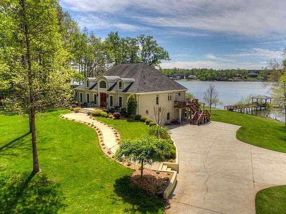 Private sanctuary on Lake Wylie with nearly 2 sprawling acres. Enter through double doors open to cathedral ceilings, with a marble foyer and magnificent ambient light. Fantastic views of the lake from almost every room in the house, including both master suites, great room, living room and kitchen. This estate features a level lot ideal for accessing approx. 160 linear feet of waterfront. The 2nd master suite is located on ground level, and is easily accessible thru the garage.