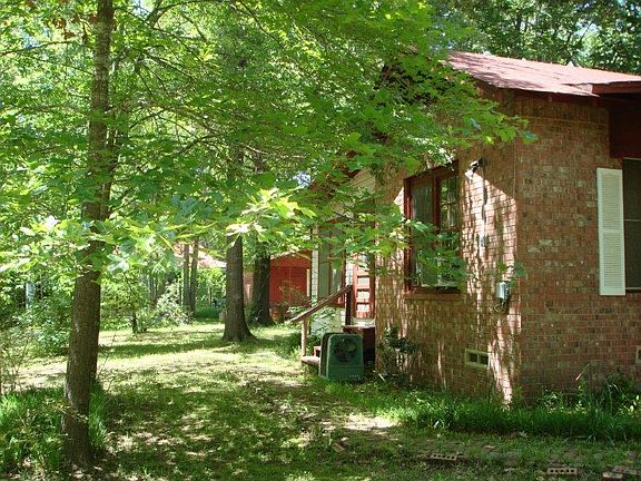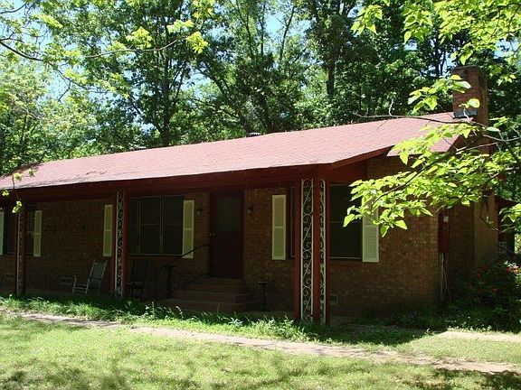 This charming brick home has a large covered porch across the front of the house; it faces the road, but has seclusion given by the line of trees in front and both sides of the house. The house has original hardwood floors. The living room has a fireplace at the end of this huge room. An added room was used as an office by the seller. The house has ductwork for central heat and air; the utility room is a separate room. There are three pecan trees, one black walnut and one fig tree.
