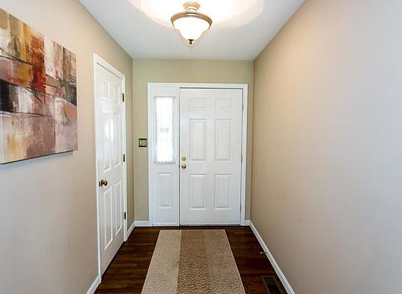 Past the covered porch of this beautiful ranch wood flooring welcomes you. Straight ahead lies the spacious great room with wood beam across the vaulted ceiling & wood burnng fireplace w/floor to ceiling brick surround. There is convenient access to patio & large backyard. The great room is open to kitchen & breakfast room perfect for all of your family gatherings & entertaining needs. The kitchens decor, oak cabinets complimented by a tile backsplash, center island & large pantry. From the breakfast rm walk out to the patio & enjoy your morning coffee. The master bedrm features a coffered ceiling, crown molding & an additional rm for your office, hobby rm or nursery. The master bath has separate bathtub, shower & skylights bringing in plenty of natural light. There are 2 additional large bedrms which share a full hall bath. The washer, dryer is located on main floor. The finished LL is huge with new carpeting, fresh paint 2017, & full bathroom. Meticulously maintained w/only 1 owner!