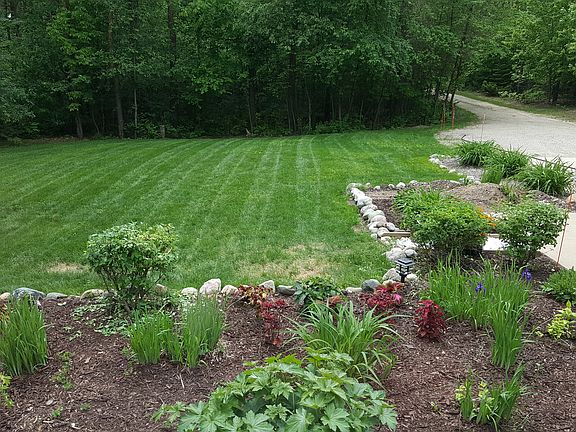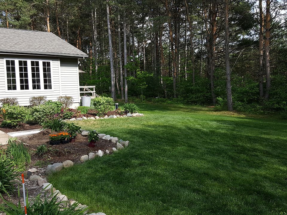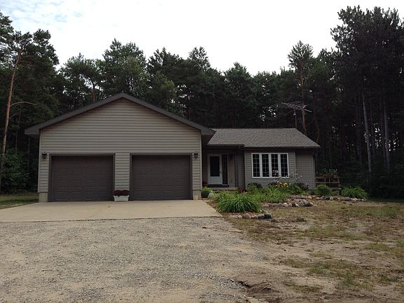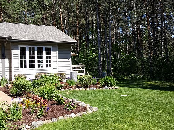 Move in ready three bedroom 2 full baths, 1950 sq.ft. Ranch home with 2 car attached garage sitting on 3 seculded acres of pines just north of the town, across from the South Arm of Lake Charlevoix (boat ramp is just down the road). Home was built in 2002 featuring large cathedral ceiling in main living room and beautiful stone gas fire place surrounded by hardwood floors. Second large family room in basement with egress windows, room for bedroom and plumbed for bath. Furnace just replaced! 1,400 sq.ft. on main level and 550 sq. ft. of finished living space on lower level.