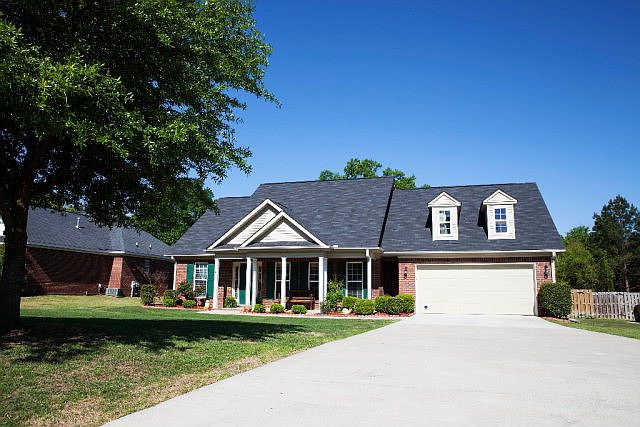 Location, Location, Location! 4 Bed, 2 Bath Brick maintenance free home, with 24 ft. rocking chair front porch, located in desirable Columbia County. Minutes to schools, shopping, medical and Ft. Gordon. A Well maintained split bedroom floor plan home in Ivy Falls Subdivision. The home has a catheral ceiling in the Great Room with elevated ceilings in the kitchen and dining room. Owner suite has tray ceiling, owner bath has double vanities, garden tub & window, and separate shower with walk in closet. Perfect back yard for entertaining with large tiered patio overlooking a saltwater pool built in 2011. The backyard is enclosed with a privacy fence and the pool is fenced around, leaving the backyard as two separate fenced areas. Behind the lot is a wooded area that gives privacy to this back yard. There are two storage buildings included, one being 10X12, and the other being 7X7. Carpet scheduled to be replaced. Great home, schedule your showing today.