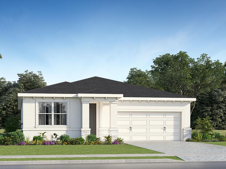 Welcome to Riverwood at Everlands! This single-story home Dahlia Model with a Lake View has a comfortable layout for growing families. This single-story home features a versatile open-concept floorplan that includes the kitchen, family and dining rooms with a connected large covered back porch. Two bedrooms are conveniently situated off the foyer, and a large owner's suite is situated at the end of the home for added privacy. Home features IMPACT WINDOWS, White Shaker Style Cabinets with Crown Molding, quartz countertops, LVP in all main living areas, Blinds on all windows, paver driveways and patio, Ring Doorbell and so much more.