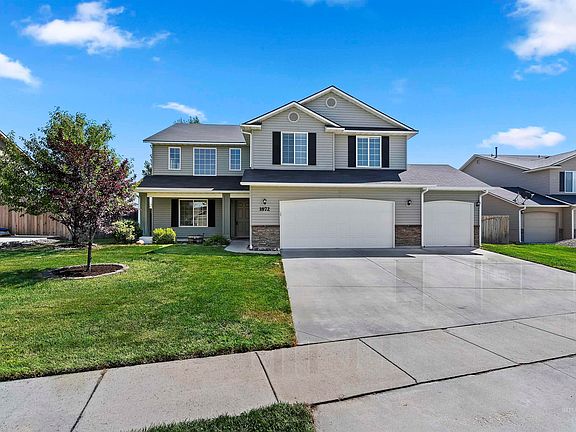 Conveniently located on a cul de sac in Lobo Creek, this home lives LARGE with spaces for everyone. The front room, previously used to home school complete with a chalkboard area, boasts 20' expansive ceiling with enormous windows to usher in the light. The top middle window was just replaced on 8/24. Brand new carpet throughout. The open concept (kitchen-eating area-great room) & a main floor office/4th bedroom are perfect for today's busy lifestyles. Refrigerator included. Kitchen island. Upstairs find a bonus loft area, an oversized master suite + 2 more bedrooms. Don't forget the 3-car garage + RV parking @ side with a double gate. Enjoy your large private & fenced back yard w 3 raised garden beds & a gorgeous mature willow tree for all day shade. Quiet street with no through traffic. There currently isn't much available in Star that's over 2500 SF + .24 acre lot for under $500,000. Buyer & Buyer's agent to verify all information
