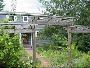 "Contemporary Saltbox on 12.5 acres in lovely Weathersfield setting with 3 bedrooms and 2.5 baths. Features include: gourmet kitchen with slate tile floor and dual heat oven, master bedroom suite w/separate entrance, radiant heat throughout first floor, enclosed 3 season porch, 2 woodstoves, lovely gardens, fresh water pond and 2 car detached garage/workshop with attached shed/chicken coop. Relax on the deck overlooking the pond, wetlands, wildlife and view of Little Ascutney. The varied landscaping includes woods and an open wetland area, a wood storage shed and a state-of-the-art ""green"" playground structure built with a recycled satellite dish."