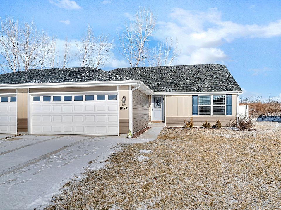 A ranch-style duplex is now available in the desirable Rockwell Estates Subdivision. This home features a bright kitchen with white cabinetry, granite countertops, and a generously sized island that opens to the spacious living room. The owner's suite is well-sized, offering comfort and privacy. Additionally, there is a versatile upstairs area that can be used as a bedroom, home office, or family room. The unique partial basement provides excellent storage space. Outside, you'll find a fenced backyard with a patio, perfect for outdoor relaxation.