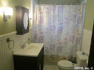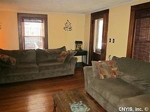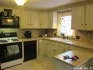 Cozy 1,415 sq ft cape style sits on nice 1 acre lot. Features 3 bedrooms, 1 fully updated bath, fully equipped updated eat-in kitchen, family room with wood burning FPL, living room & enclosed front porch. 2 car attached garage, red barn, large nice yard, first floor laundry, maintenance free exterior. Country living, Skaneateles schools.All Borodino residents have access to Skaneateles lake for swimming and boat launch. Welcome Home!