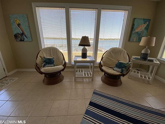 RARE WATERFRONT FIND IN SEA OATS. It's Your Paradise on Little Lagoon with all the luxuries of Home. SOLD FULLY FURNISHED this Beautifully decorated Large 2 Bedroom sleeping 6-8 for a great GREAT TIME or VACATION RENTAL. Updated Master Bath with Walk-in Shower. Large Kitchen with everything you will need to cook up your favorite meals after fun in the sun. HVAC age 3 years, Whirlpool Appliances with Builtin Microwave. Waterfront Condo offers relaxing water views from every room. Complex Features: Boat Slips with private Boat and Kayak Launch, Fishing Pier with cleaning stations right next to Gazebo Picnic BBQ area on the Lagoon. 8 Acres Beautifully landscaped with plenty of room to play or walk the family pets. 2 Over sized Pools. Deeded Beach Access just a short walk across the street. Building have Metal roofs, Assigned Parking under Buildings with Covered Entrance. Extra Lot Parking. Balconies may have Electric Luggage hoist installed. Owners storage in condo and Storage Closet in Carport.All you need is fishing rods and flip flops.