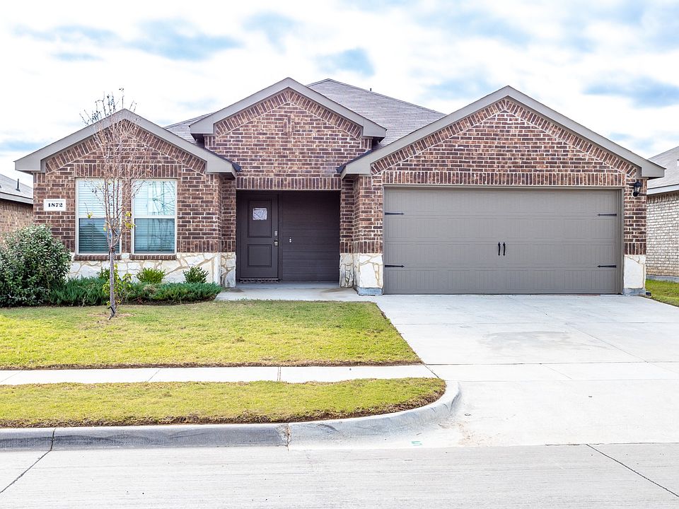 Great gently lived in home in Bear Creek Ranch Estates featuring 3 bedrooms and 2 full baths. This residence boasts a modern kitchen with a spacious island, stainless steel appliances, and elegant granite countertops. The flooring includes durable laminate and tile throughout, with plush carpet reserved for the bedrooms. Designed with an open floor plan, it's perfect for hosting gatherings and holiday celebrations. Step out to the back porch and enjoy a large backyard, ideal for outdoor activities and relaxation. Conveniently located near the historic town square and just 30 minutes from Dallas, this home combines charm, comfort, and accessibility