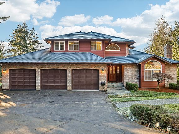 Welcome to Cascade Ridge where you can experience luxury mountain top living for yourself! Home boasts 4,379sq.ft of well maintained & move-in ready living space atop a huge ~2 acre parcel. Beautiful wood finishes & vaulted ceilings throughout create warm welcome environments. Granite kitchen w/ tons of cabinet & counter space, island & full pantry. Primary suite features a reading nook & 5-piece bath w/ soaking tub. 2 additional generous size bedrooms & guest bath. Enjoy views of the sound, Olympics, sunsets & farmland panoramas from the many large windows. Basement has lots of extra living & rec spaces inc. bonus room w/ nearby bath. Large deck to take in the view & relax or entertain & BBQ! Oversize 3 car garage. Fully fenced backyard.