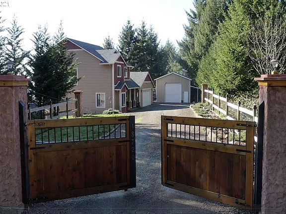 Gated Oceanview Estate located on 10+acres just 10 min from town! Immaculate open concept, 4 bedroom, 2.5 bath, office/den, media room, oversized 2 car garage & 25x30 shop! Granite cooks kitchen has plenty of work/counter space, SS appliances, custom alder wood cabinetry and gorgeous engineered hickory hardwood floors on main living areas. Gravity fed 2500 gal additional water holding tank. Artist studio with w/deck, RV parklng, raised garden beds. Large meadow great for horses and animals.