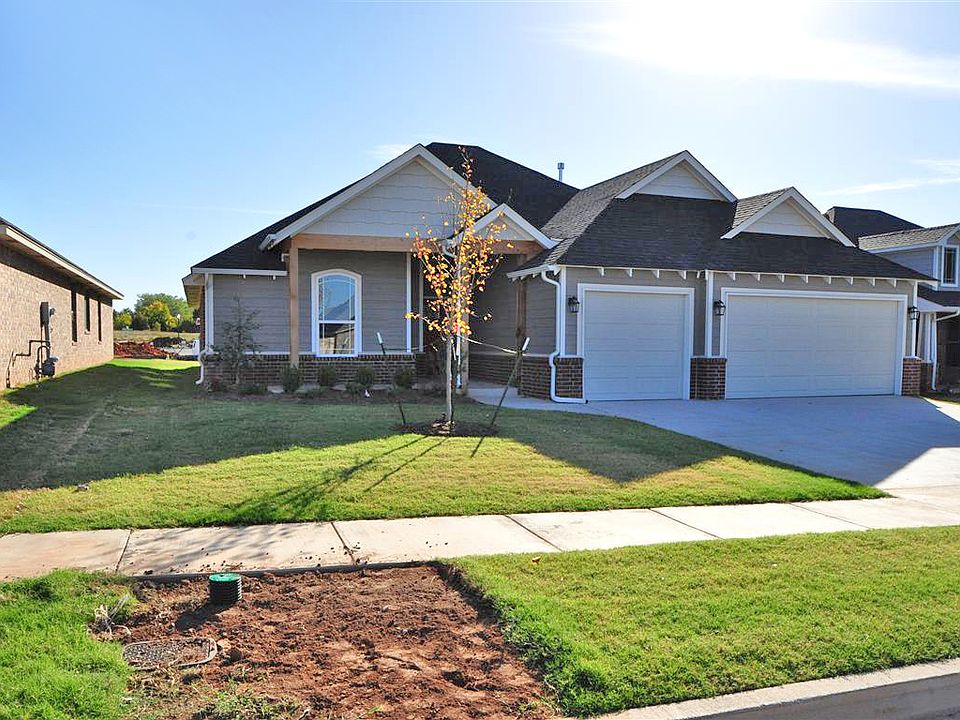 Elegance! With the bungalow flair! Beautiful 4 bedroom, 2 bath home with 3 car garage, sprinkler system and still time to pick your colors on this amazing energy efficient home. If you want an open concept plan, this is it. Designed your kitchen boasting a large island, trendy backsplash, stainless appliances, and unique front of bar storage. Oversized, the dining area shines with 2 large picturesque windows and tile flooring. Your master boasts cathedral ceilings and a master bath with dual sinks, walk-in shower, and oversized whirlpool bath. Enjoy quiet evenings from your spacious covered patio. Plenty of storage and 6-panel doors throughout. $10k Buyer’s incentive to be used for closing costs, prepaids, blinds, garage openers, fence, storm shelter, etc.