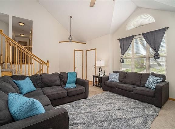Great opportunity in sought after South Hampton! This front to back split features an open family room with fireplace, vaulted ceiling and large windows offering an abundance of natural light. Spacious kitchen with stainless steel appliances and breakfast bar. Masters suite includes a private bath with double vanities, walk in shower and walk in closet. Full, finished walkout basement with rec area and half bath plus a bonus storage area/laundry room in sub basement. Large, fenced backyard - perfect for entertaining! Award winning Olathe schools and within walking distance to Madison Elementary. Convenient location minutes away from area parks, lakes, restaurants and shops, plus great highway access. Don't miss this one!