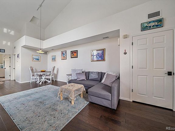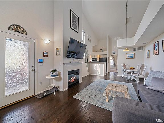 Move in Ready 2 bedroom and 2-bathroom Condo in quiet location. The Spacious open and vaulted Living room has tons of natural light. Hickory hardwood flooring. Gas Fireplace. Updated kitchen with quartz countertops, subway tile backsplash, and under cabinet lighting. The laundry room includes the washer and dryer. Each Bedroom has its own bathroom! Private patio area. One car garage with storage. Rock Ridge Condominiums include a swimming pool and a clubhouse. Great Location and close to all the area Amenities- Parks, Trails, Shopping and Dining. Easy access to C-470 or 225 to get to the Airport, The Tech Center or Downtown Denver.