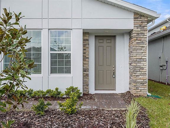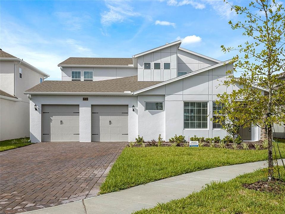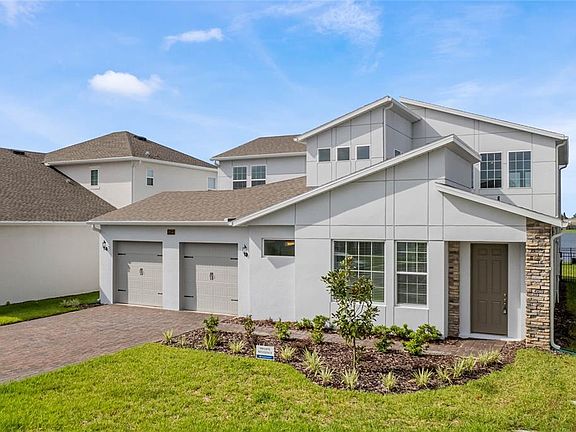 Welcome to this exceptional 5-bedroom, 5-bathroom residence in the highly sought-after Summerdale Park at Lake Nona, set on a private cul-de-sac with an extended driveway for up to 6 cars, a 3-car garage, a fenced backyard, and beautiful lake views. It also includes a private 1-bed/1-bath annex with closet perfect as a dedicated home office or to provide independent living for a family member. The home showcases premium upgrades throughout. Enter through the main door into a private paved courtyard, perfect for outdoor relaxation, which connects to a convenient in-law suite complete with bedroom, full bath, and walk-in closet. Inside, the open living and dining areas boast soaring 20-foot ceilings and 10 oversized windows, creating a bright and luxurious atmosphere. The gourmet kitchen features 42" modern shaker cabinets, striking black quartz counters, a smoked glass backsplash, large sink, dishwasher, and refrigerator. The spacious primary suite on the main floor accommodates a California king plus seating, and includes a spa-like bath with dual sinks, wall-to-wall shower, and a large walk-in closet. Throughout the first level, stone-look ceramic flooring adds elegance and durability. A wide wood staircase leads to the upstairs loft/TV area with a wet bar, sink, cabinets, and beverage cooler perfect for entertaining. The second floor also offers three additional bedrooms: two share a Jack-and-Jill bath, while the third has access to a full bath. Enjoy unforgettable sunsets from the covered lanai, overlooking the lake and fully fenced backyard, just 10 feet from the water's edge. Community amenities include scenic walking paths, playgrounds, and a resort-style pool with cabanas. This lakefront gem combines modern design, comfort, and an unbeatable location schedule your private tour today!
