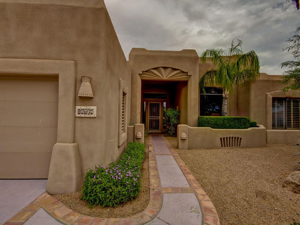 NOW PRICED BELOW RECENTLY APPRAISED VALUE !! Beautiful home with rustic charm of the Old Pueblo! Unique architectural design with exposed beams, plantation shutters, neutral tile flooring, 84'''' windows with plenty of natural light streaming through, and a cozy fireplace with hearth seating. Wonderful chef''s kitchen with whitewashed cabinets, double wall ovens, tiled countertops, center island,breakfast bar, and skylight. Master suite boasts walk in closet and spa like bath including tiled walk in shower and separate tub. Separate office with sleeping options also. Extended surround covered patio overlooks the meticulous desert landscape and gorgeous mountain views !! This home has everything to enable owners to enjoy all Rio Verde has to offer including a GREAT VALUE in today''s market !!